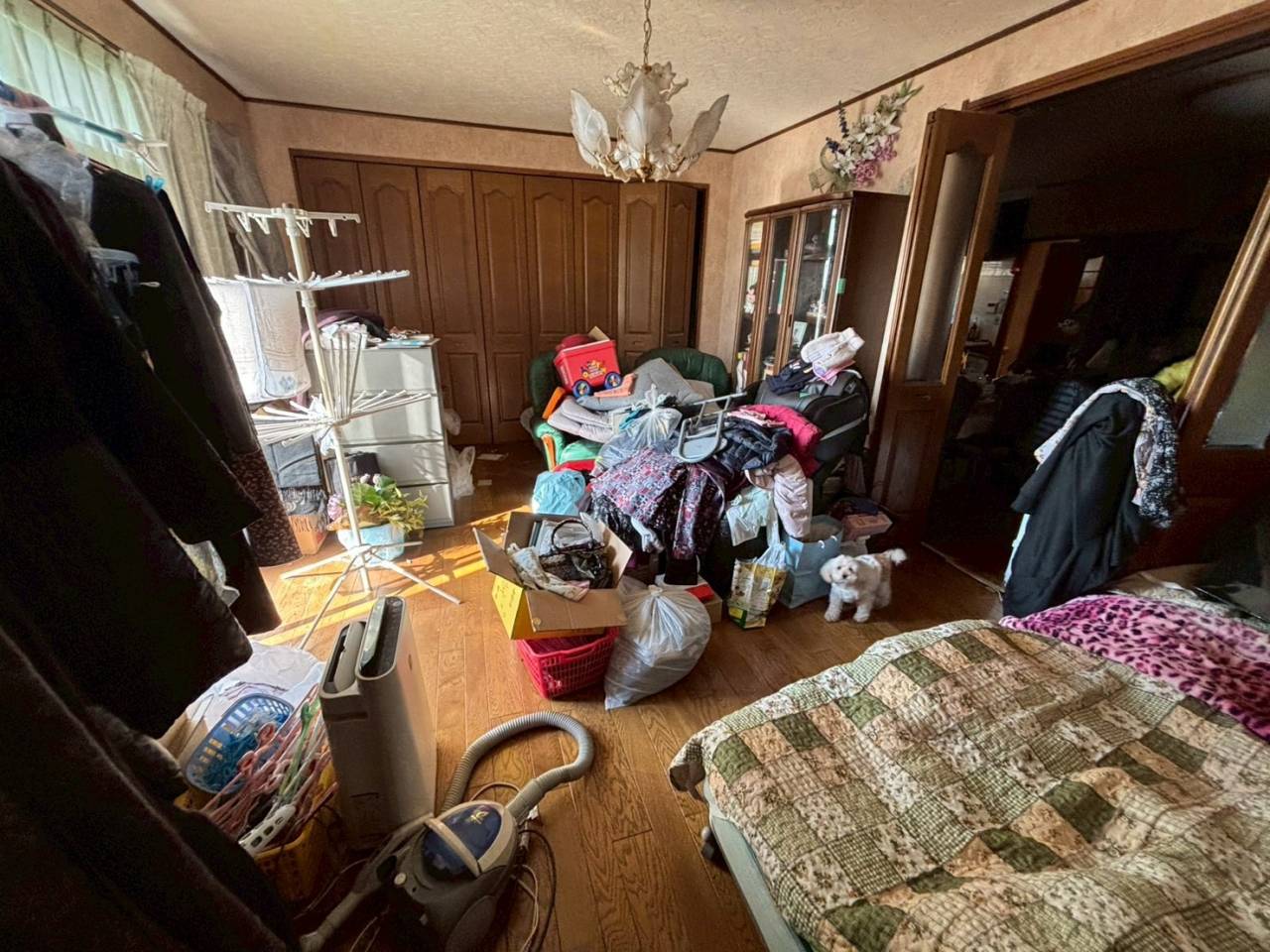 作業前はお部屋いっぱいに家具うあ生活用品があり、動線の確保も難しい状態でしたが、